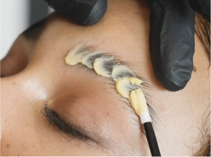 Next, we’ll brush them into your desired position before applying a treatment lotion that sets the brows in place.